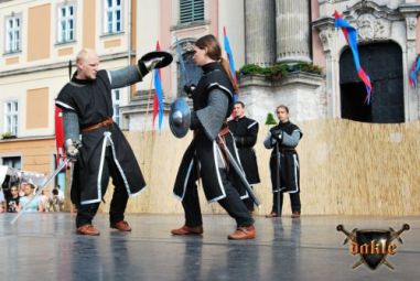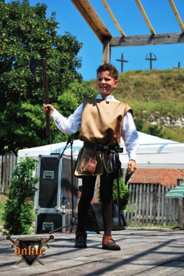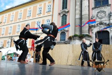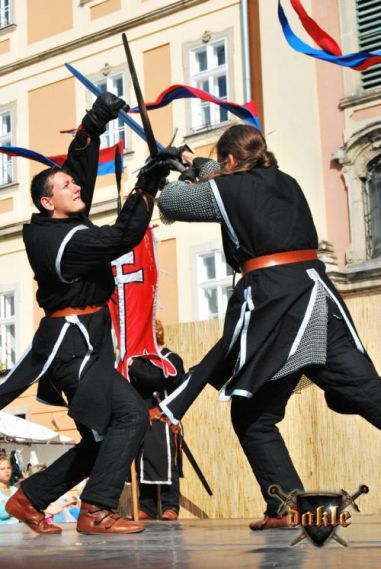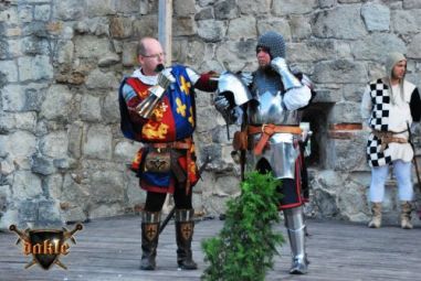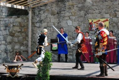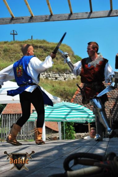 Jól halad a műsor nézőszámba is jól állunk, Gabó és Tomi száma megy éppen, remekül ... hoppá az ott egy „érvényes találat” ... Tomi mellkasán ... kicsit furcsán néz ki Tomi, de nyomják tovább. A szám közbe a közönség mindebből semmit sem vett észre! Ez a profizmus!!! Egy párharc és Tomival kell küzdenem, vajon tényleg jól van, a harc közben is a szemét figyelem, ... meg is kavarodunk de azért lehozzuk ... vége! Én meg még mindig azon aggódom Tamás valóban jól van-e! De jól volt valóban, hál’ Istennek! A program neheze azonban számomra még hátra volt egy kis Tánc! Rémes ez a szó: Tánc! Előtte azonban még egy kis őrség a „2-es” kapunál! A többiek pedig addig felviszik a fegyvereket, meg egyéb kellékeket!