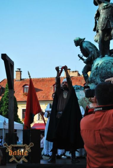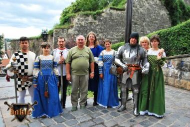 Mindjárt kezdünk, siessünk, ... ugyan még a romacsajok táncolnak a színpadon... Nyomás a színpad mögé megbeszélni a táncra vonatkozó apró részleteket. Mára tanulva a múltkori hibákból mindent lepróbáltunk a színpad mögött, hogyan állnak a lányok hogyan érkezünk, és hogyan vonulunk le! Naná hogy azért a tagozódásba sikerült az első két párnak kellőképpen a színpad közepén maradni így elég közel táncoltunk egymáshoz de ez azért már lényegesen jobban sikerült mint a 2. nap! Oli az új partnernőm is remek segítség volt, így most sem hibáztam, még annyit sem mint a múltkor amikor szintén nem hibáztam csak kicsit bizonytalanul mozogtam! Egy biztos NEM LESZEK TÁNCOS, csak komikus! Játszani imádok, előadáson ugyan úgy, mint az életben, engem ez éltet! Végre kicsi szabadidő! Csikivel elmentünk a pénzverdébe, no jó csak érme verde de akkor is nagy élmény, több régi ritka érme látható és vásárolható meg, ez némiképp kárpótol azért hogy a panoptikumi kirándulást majd csak jövőre ejthetjük meg mert nincs rá időnk! Pedig én hogy szerettem volna, de ... és holnap ... holnap már nem leszünk itt! Rohanás ismét mert a 2 kezes kardot is sikerült felküldeni, holott az kell a záróünnepségen a vonulásnál! Igen ismét rohanunk, jaaa amúgy eleddig nem volt időm senkinek semmit venni, hmm... és ez már így is marad az idén, ma hamarosan haza fogunk utazni, ez rettenetes, ebből még jó néhány napot el tudtam volna viselni, de ... mindjárt vége! Feléretünk, és már rohanhatunk is le ... vonulni! Persze-persze levonulni! Nem fogjátok kitalálni mit csinálunk már megint ... honnan tudtátok hogy rohanunk?! Persze épp a vonulás elejére oda is érünk sok formalitásra nem jut időnk de azért így is sikerül ösztönösen jól beállnunk! Naná hogy a zászló megint hiányzik majd, pedig... Kiderül időközben hogy Csikit kereste valamely szervező... soha nem tudjuk meg miért. Beértünk a Dobó térre már Isten tudj hányadszor ... de most ellentétbe a megnyitóval ahol 2x is most 1x se mondtak be minket ! Remek! Aztán a záróbeszéd kulcs visszaadása a polgármesternek és a szalagok felkötése a résztvevő egyesületek... hoppácska ... zászlajára, ami csak nekünk nem volt! Azért Lotár az egyesületünk nőgyógyásza és hóhérja megmentette számunkra is a szalagot. Aztán kivonultunk és felrobbantunk a dühtől! Se baj jövőre ilyet sem hibázunk majd, és reméljük a szervezők sem, bár tartok attól, hogy valakinek a Csiki távollétébe vállalni kellett volna, az ad- hoc csapatvezetőséget és megtudni a záró ünnepség részleteit! Mondom jövőre már ilyen hibákat se fogunk... no de majd akkor mást fogunk el ... és ez ettől szép! Spontán jó vagy rossz, a sok munka pillanatok alatt elszáll ha nem figyelünk megy az egész a levesbe... ! Irány fel a hegyre ott is a 4. emeletre ... utoljára ... legalább is az idén! Csomagolás, búcsúzkodás és indulnak a motorizált, sok pacis hintók Debrecen felé, a szerencsések még Maklárnál megpihentek kicsit, de mi mint a villám száguldottunk ... haza! Általában az ember szeret hazaérni, ez nem az az eset, úgy elmúlt ez a 4 nap mintha soha nem történt volna meg. Csak a fotók és az emlékek maradtak ... talán a nyár legszebb 4 napja volt!