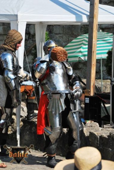 Nos, 3 éjszaka nem múlhat el nyomtalanul, így valószínű a mai legnagyobb ellenségem a tükör lesz! De nem enyhén karikás szemmel sem nézek ki rosszul! Az ébredés azért nem ment olyan simán a tusolás valamennyit segít ... de a kávé az, ami életet menthet! A reggeli most is számomra a kávé a várban. A késői kelés azonban nem ad sok időt a szürcsölgetésre, irány vissza a szálásra! Ha egy nap így indul az általában ilyen is marad, sietni mindenhova, ... félig elkésve ... alig oda érve ... nem jó ómen, ha már a kávét is gyorsan iszom! Pedig ma sem kell korán síkra szállnunk, ám azt hogy a sors kegyes lenne, nem állítanám hisz megint délbe kezdünk ( és meleg az van ) fegyverbemutatóval! Tévedtem a csapat teljességét illetően hisz ma is volt erősítés így a csapat vége csak most ért ide a két Békési Attila személyébe! Jobb későn, mint még később! Dél ! Ha valaki hiányolná az – Ebéd sztorit, nos tutti hogy volt és finom is volt hogy pontosan mikor azt már nem igazán tudom, de úttörőgombóc volt azaz tarhonyás miújság! Ismét nagyot alakítottak Nelli szülei, jól laktunk arra mérget vehet bárki! Ha nem tévedek fellépés előtt ettünk mert a rohanás így kívánta meg, de erre azonban már ne vegyetek mérget!