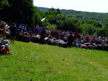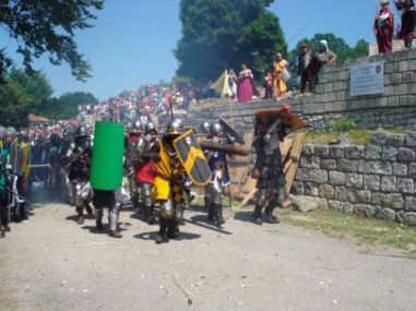 Egy több mint öt évszázada történt esemény elevenedett meg a mező két oldalán összegyűlt, közel 10.000 fős közönség szeme láttára, ahogy a három "felvonásos" csata a vár melletti mezőn kezdetét vette. A szekerek és a különféle színekben rikító sátrak határolta keresztes táborban felkerültek az utolsó darab páncélok is a lovagokra, a mező túloldalán pedig a déli nap elől a fák árnyékába menekült törökök kezdték rendezgetni soraikat. A vezérek jelt adtak, s kisvártatva már szemtől szemben állt egymással a két sereg. Minden keresztes kardra két török szablya jutott, ahogy megindultak egymás felé. Minden lépéskor kardok döngették a pajzsokat, mintha csak a kezdődő összecsapás ütemes szívverését hallanánk. A két tábor már csak pár méterre került egymástól, mikor torokszaggató kiáltásokkal kísérve egymásnak csapódtak.